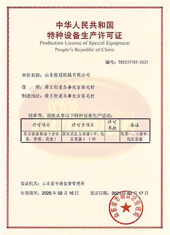 山東桂冠機械有限公司成立于2008年,注冊資金1600萬元,現有員工200多人,中高級技術管理人員45人,占地面積27000多平方米,生產車間面積12000多平方米。公司具備壓力容器產品的設計、制造(證書編號為:TS2237703-2025)、壓力管道安裝(證書編號為TS3837607-2025)全套壓力容器資質;通過國家ISO9001質量管理體系認證、美國ASME認證、歐盟CE認證;擁有建筑安裝機電工程專業承包叁級資質、建筑工程施工總承包叁級資質及對外貿易經營出口權…